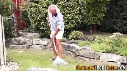 Curvy gorgeous brunette teen bangs grandpas dick in POV 6:00